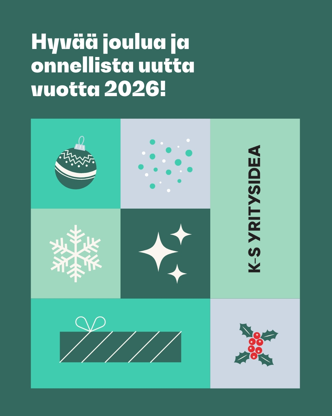 K-S Yritysidean tiimi toivottaa kaikille hyvää joulua ja menestystä uudelle vuodelle!